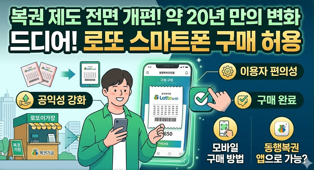 이러한 문제의식을 바탕으로 정부는 복권기금 배분 방식과 복권 구매 제도를 동시에 개선하는 복권 제도 전면 개편에 착수했습니다. 이번 개편은 단순한 운영 개선을 넘어 복권의 공익성을 강화하고 이용자 편의성을 높인 구조적 변화라는 점에서 의미가 큽니다.